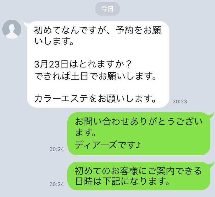 ディアーズへのご予約は、24時間受け付けているLINEが便利です。